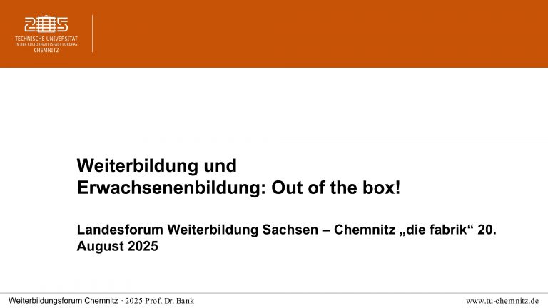 Der Freistaat Sachsen hat mit Blick auf die Bildungslandschaft 2030 und die im Fluss befindliche Weiterbildungsgesetzgebung die seltene Chance, nicht nur die Frage der Verwertbarkeit des Gelernten in den Hintergrund zu schieben, sondern aus einer Menge von Schulen und Weiterbildungsinstitutionen ein Bildungssystem entstehen zu lassen. Wie das zu bewerkstelligen wäre, wurde in diesem Vortrag umrissen.